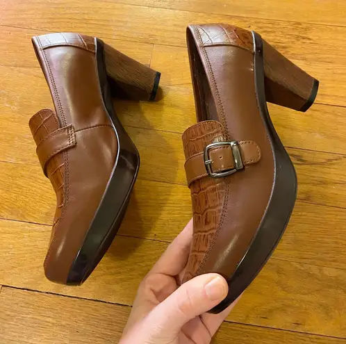 NWOT sanita brown leather buckle heel clogs block heel Size 7.5 - $45 - From Lane
