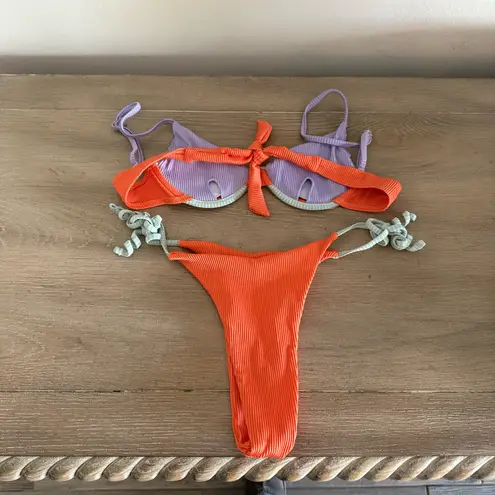 NWOT SHEIN Orange, Purple & Mint Color Block Ribbed String Bikini size S. Accented with fully adjust... Show more