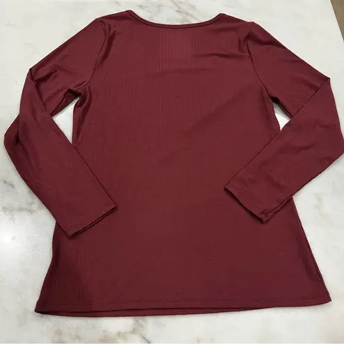 Burgundy long-sleeve top featuring a ribbed knit texture. This Torrid Super Soft Henley Top features... Show more