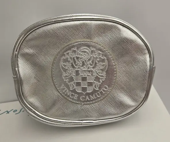 NWOT Vince Camuto Cosmetic Bag Silver Metallic Faux Leather Zipper Purple Lining - $10 - From Jazmyn