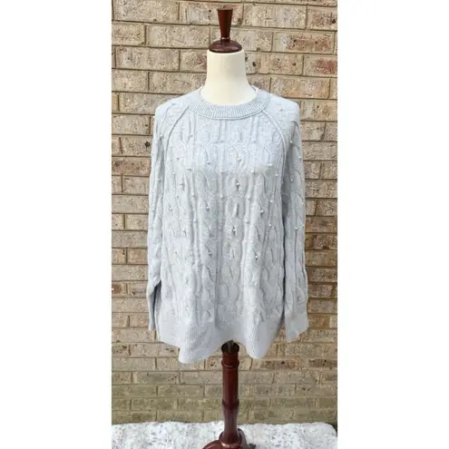 -NEW WITH TAGS -Aerie Unreal Cable Crew Sweater With Pearls -Color: Gray -Size: Large -Crewneck pull... Show more