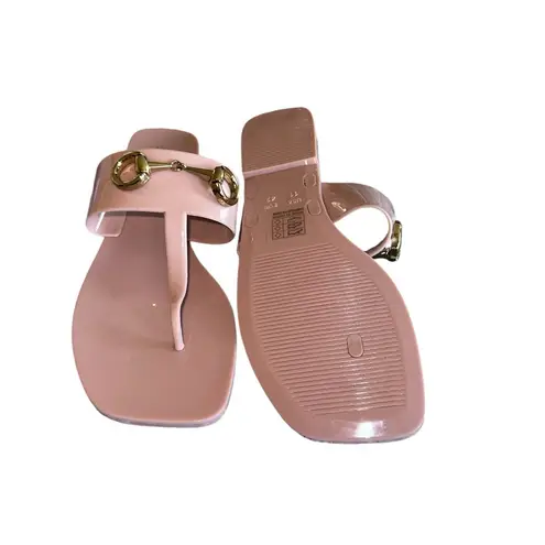 Polished bit hardware brings a sophisticated flourish to this sleek and shiny sandal Synthetic upper... Show more