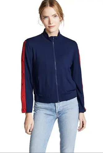 Fabric: Jersey Contrast snap detail at sleeves Waist-length style Mock neck Long sleeves Zip at fron... Show more