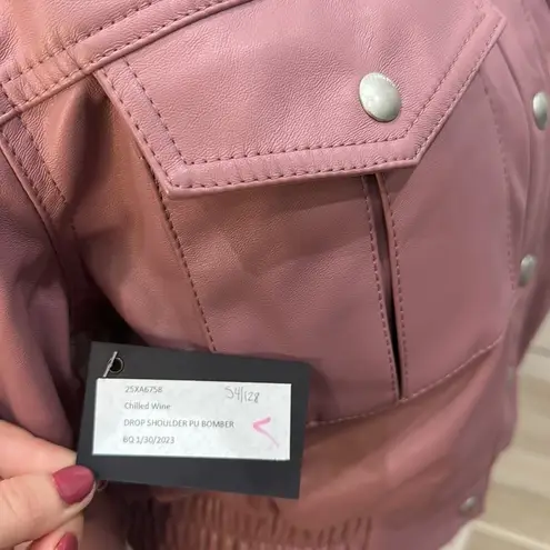 Vegan Leather Cropped Motorcycle Jacket by Blank NYC MSRP $125 Color is chilled wine Size small Bu... Show more