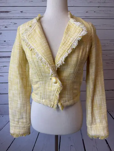 NWT Cabi Blazer Cropped Yellow Fringed size XS Extra Small Single button closure, #339 339 Yellow Da... Show more
