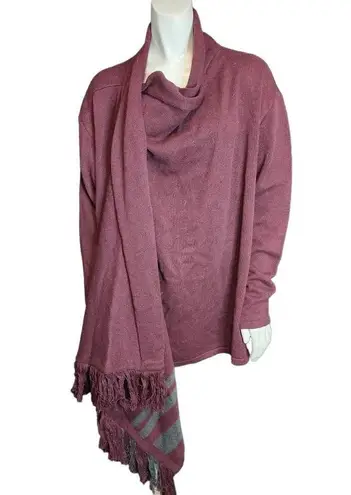 New with tag. Cabi maroon and gray knit fringe wrap sweater. Size: Large 100% Cotton