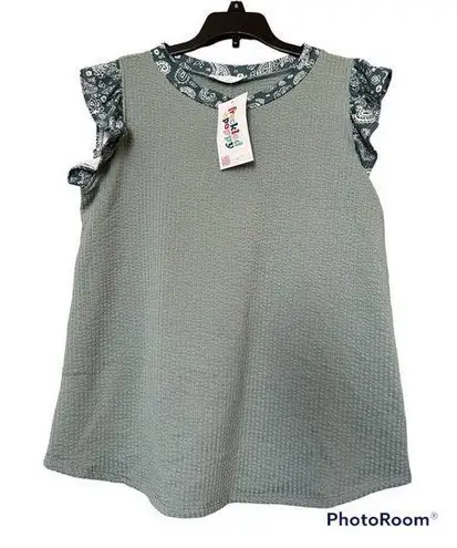 NWT Ces‎ Femme textured tank with paisley ruffle sleeve Small Green - $15 New With Tags - From Chad