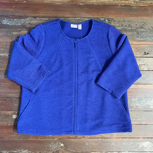 Chicoβs Mandy textured full zip jacket offers a stylish crinkle knit design. Perfect for layering, this light jacket provides comfort and a chic look for any occasion.