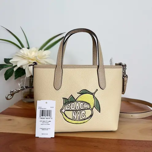 NWT COACH CITY MINI TOTE BAG WITH LEMON PRINT Color SV/Moonlight Refined pebble leather Inside mult... Show more