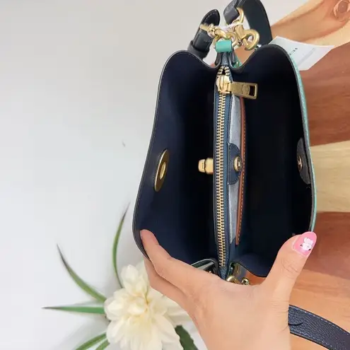 NWT Coach Willow Bucket Bag In Colorblock Color B4/Bright Green Multi Polished pebble leather Insi... Show more