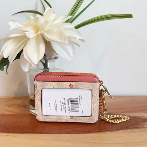NWT Coach Zip Card Case In Signature Canvas With Floral Print Color: Gold/Sand Multi CAU45 Measure... Show more