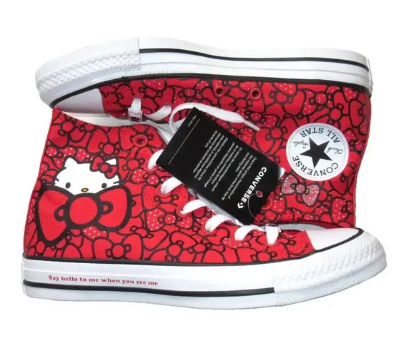 Up for purchase today is... Designer: Converse x Hello Kitty Size: Women's 7 / Men's 5 Color: Red... Show more