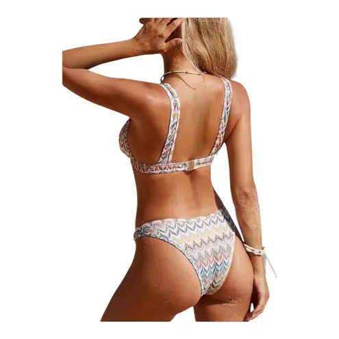 NWT-CUPSHE-WOMENS 2 PIECE BIKINI SET-TEXTURED O RING-CHEEKY BATHING SUIT-MEDIUM Greens, blues and pi... Show more