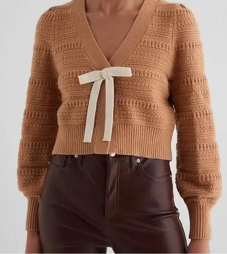 New With Tags Express Soft Textured Knit Cropoed Bow Cardigan Sz M Length from top of shoulder appr... Show more