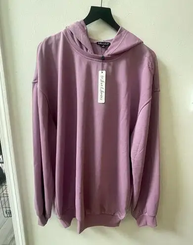 Light purple oversized lightweight long sleeve hoodie. “For Love & Leisure” embroidered on shoulder.... Show more