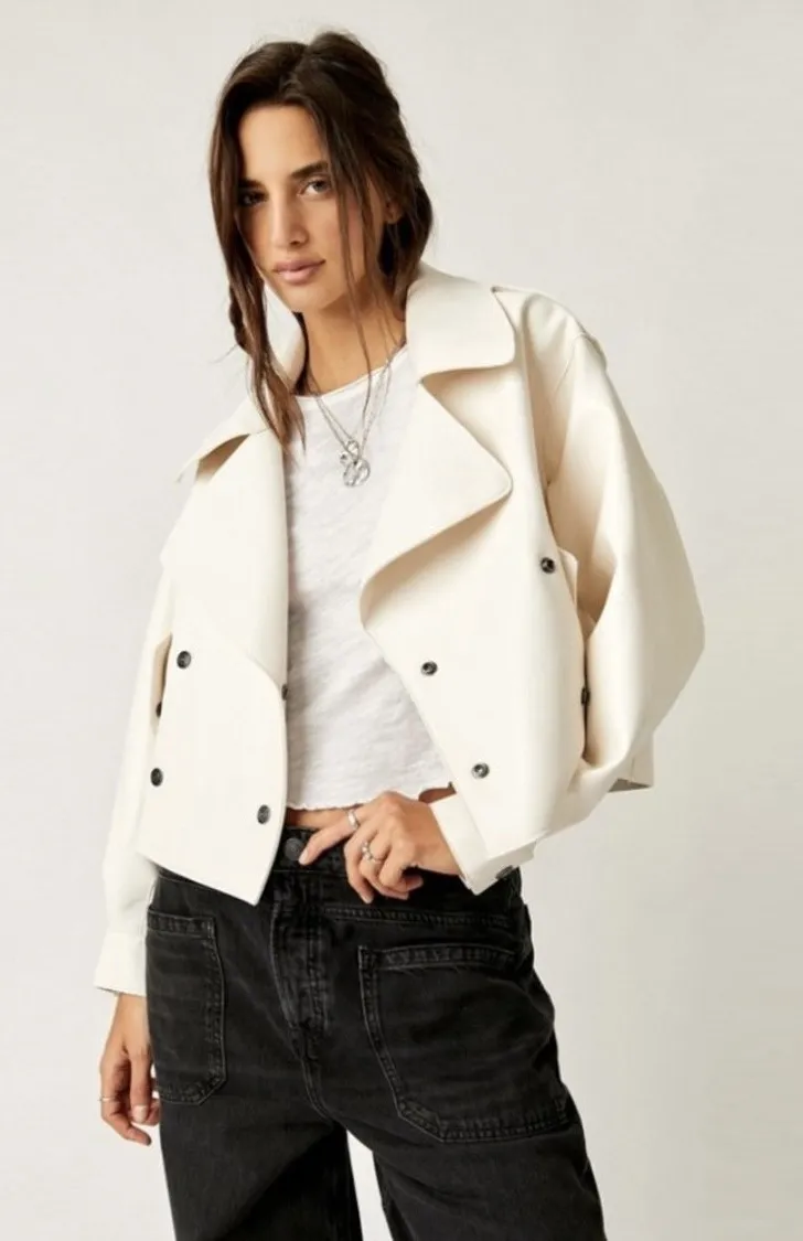 Free People alexis vegan leather jacket in ivory, size large Just as cool as it is classic, this st... Show more
