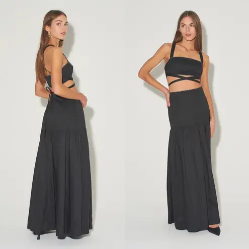 NWT Free People Hansen & Gretel Moonstruck Set Black Rhinestone Cropped Top Maxi Skirt Small