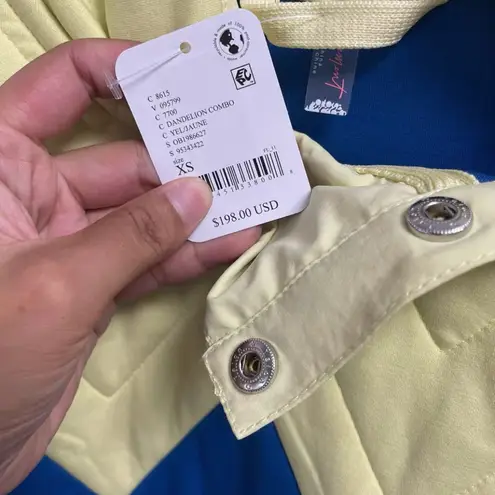 Brand new and size L Stay stylish and comfortable with this vibrant women's jacket. Featuring a striking combination of blue and yellow, this jacket is perfect for adding a pop of color to your wardrobe.