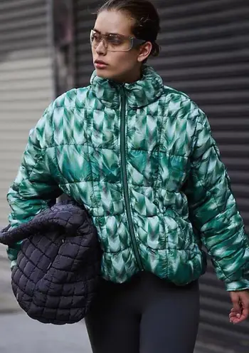 NWT FREE PEOPLE Scrunchy Glossy Printed Pippa Packable Puffer Jacket L Green Size L - $165 - From Miya