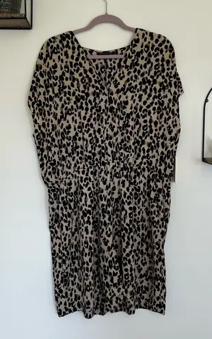 NWT Halogen Tan Animal Print Leopard Short Sleeve V Neck Romper Size XL Measurements (approximate,... Show more