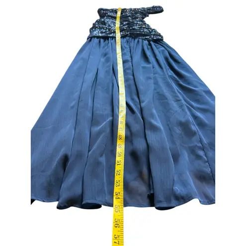 This elegant Hello Molly navy blue one-shoulder gown is perfect for any formal occasion. The fitted... Show more