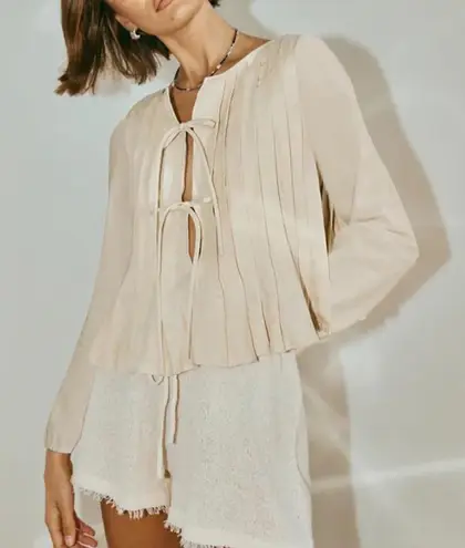 NWT Linen and Cotton Boho Pleated Front Tie Top Tan Size M - $18 New With Tags - From Vicky