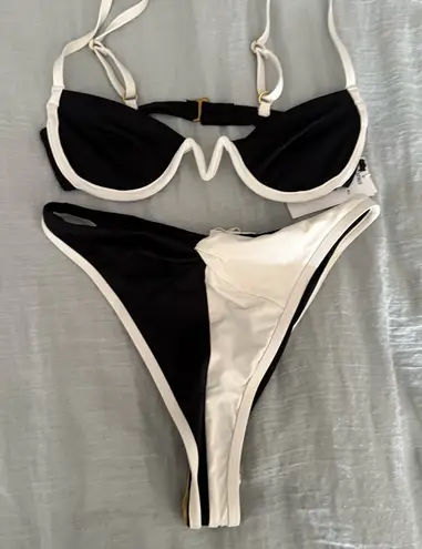 Elegant bikini set with bold contrast. Perfect for beach days.