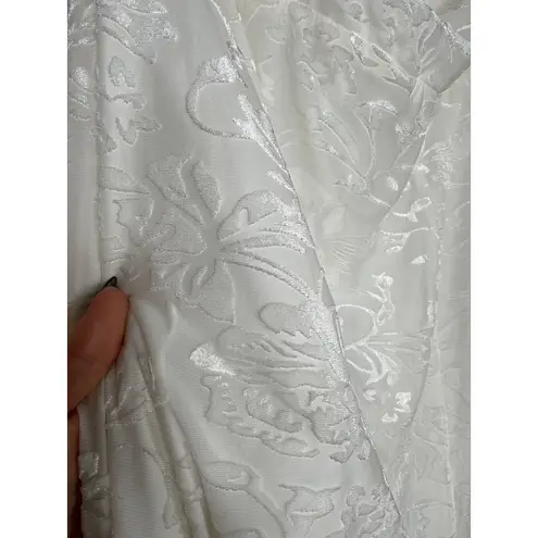 A velvet floral jacquard pattern adorns the stretchy mesh overlay of this luxe dress that features a strapless, princess-seamed bodice with a sweetheart neckline, hidden no-slip strips, and supportive side boning. A high, fitted waist tops a figure-skimming column skirt that falls to a chic maxi hem with a flirty side slit. Hidden back zipper/clasp.