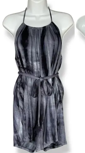 NWT Lulu's tie-dye short romper in a blueish gray and black. Tie belt at the waist. Halter neckline,... Show more