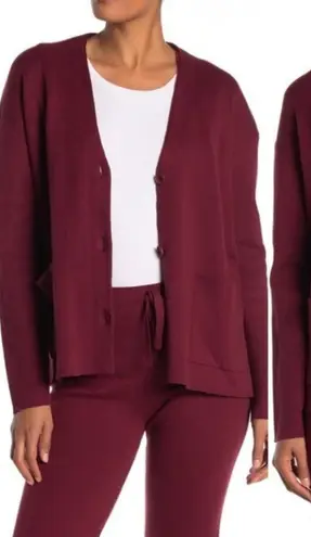 Michael Stars Milano V Neck Dolman Sweater Size Medium New with tags Comes with replacement button and additional thread Button up cardigan Slits on side hem Front working pockets Thicker weight Burgundy Wine Pinot Color