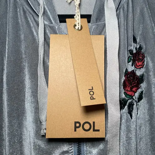 NWT POL Women's size Large Gray Velvet Valeur Embroidered Rose Hoodie Sweatshirt. POL brand women's... Show more