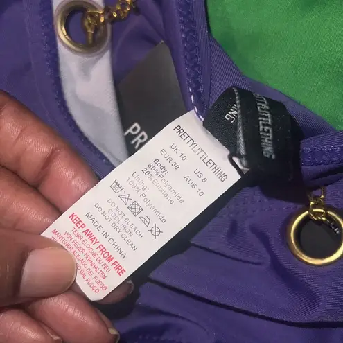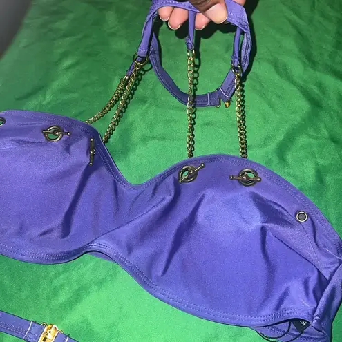 Stylish purple bikini featuring gold chain accents. Perfect for a chic beach look. SOME TARNISH ON... Show more