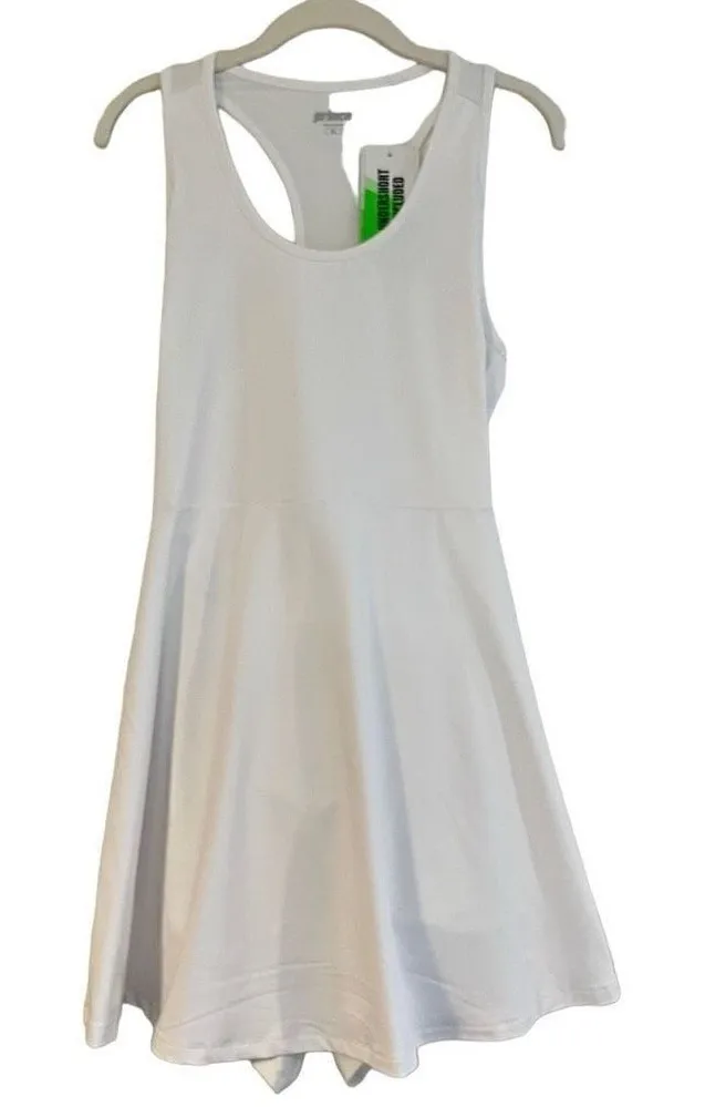 NWT Prince Women’s White Tennis Dress Undershorts Included Medium. This new with tags dress is in great condition. There are some spots on the under shorts and dress. Please see all photos. Measurements in photos. Comes from a smoke free home.
