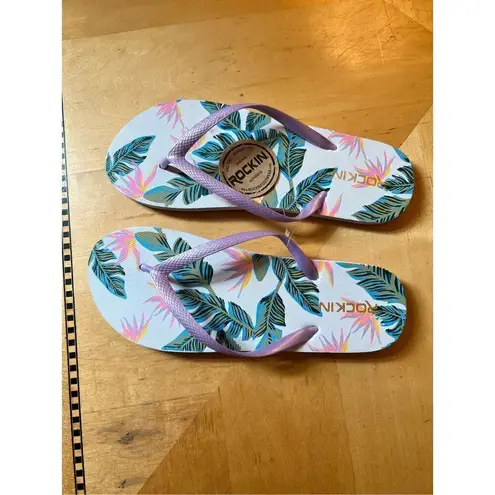 NWT! Rockin Tropical Leaf Print Flip Flops Size 8 White - $12 New With Tags - From Nicole