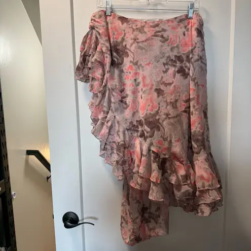 NWT Ryu Assymetric Frilly Ruffle Skirt Layered Flowy Pink‎ Brown Floral Fairy L Pink Size L - $22 New With Tags - From Abbey