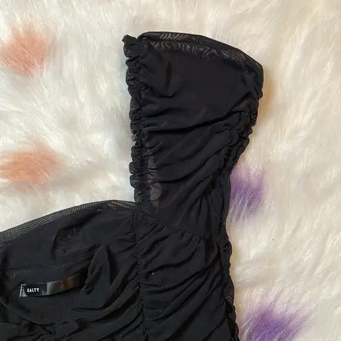 Black Cap Sleeve Cinched Crop Top Woman’s Size Large - $16 - From Bryana