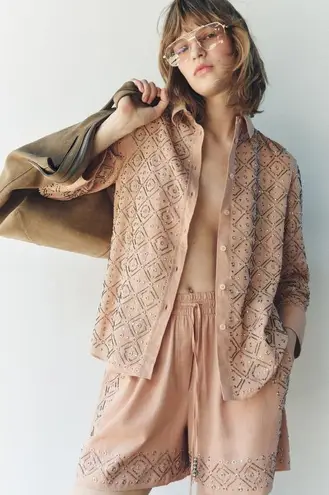Brand new with tags! Zara Collection Beaded Embroidered Grommet Long Sleeve Collared Button Front Sh... Show more