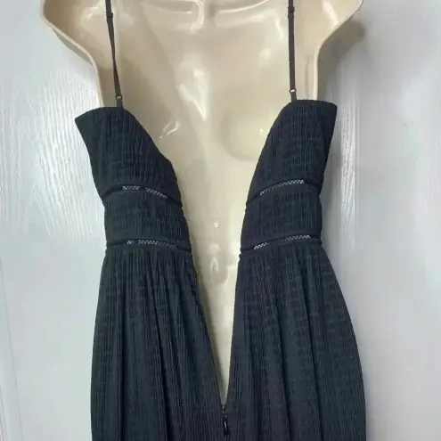 Elegance and sultry style meet in this fabulous bustier top gown by SIMKHAI. Pair the plunging neckline with a delicate rhinestone necklace and a bold red lip for a Hollywood-worthy look. Fabric: Lightweight, non-stretch plissé Bustier style bodice with padded cups Ladder stitch trim Adjustable shoulder straps Structured ruffle hem Hidden zip at back Shell: 100% polyester Lined Dry clean