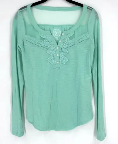 NWT SO Turquoise Blue Lace Long Sleeve Henley Top Size XS New with tags. New condition. Cotton/mo... Show more