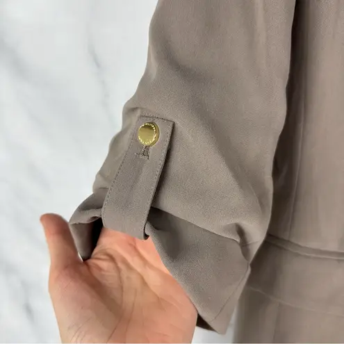Tahari New with tag women's size XS RETAIL: $88 neutral gray-tan taupe color "mushroom" adjustable cuffed 3/4 sleeves with tab & gold logo button 2 front pockets with flap closure (can also tuck flap in) open front blazer jacket with notched lapel longer length, oversized relaxed fit minimalist design lined *approx* measurements: 18" pit to pit across front laying flat 28.5" longer length AOGF classic dressy-casual career office work workwear going out date night trendy chic elevated modern contemporary mature modest retro mod vintage-inspired 70s 80s 90s 2000s y2k masc blogger favorite shoes reseller free people anthropologie loveshackfancy mother anine bing aritzia skims abercrombie & fitch theory revolve veronica beard reformation aerie madewell j. crew ralph lauren polo zara aviator nation jenni kayne doen nordstrom
