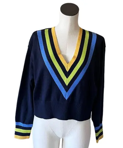 TOMMY HILFIGER Striped-trim Cropped Sweater In Sky Capt Multi long sleeve slightly crop striped