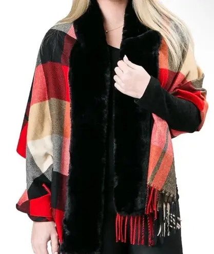 NWT Top it Off Lily Wrap Plaid Women's wrap with Black Fur Trim one size Red - $18 New With Tags - From Mia