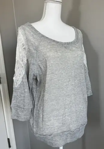 New with tags TORRID Woman’s size 0 Light gray with white lace peek-a-boo sleeve cut outs 3/4 sle... Show more