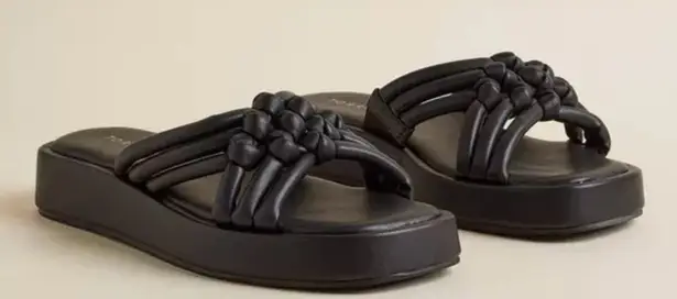 Chic black sandals with a unique knotted strap design. Perfect for casual wear. Size 8.5WW