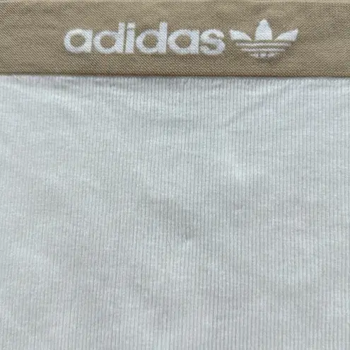 Cream shorts with tan waistband. Features Adidas logo. Perfect for casual wear. Perfect for any outd... Show more