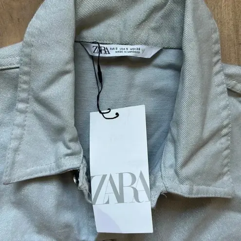 NWT ZARA Metallic Denim 100% Cotton DustyBlue Shimmer Short Romper 6929/201 Sz S Silver - $65 New With Tags - From Elizabeth