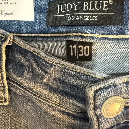 These Judy Blue jeans offer Fun Stylish Paint Splatter Distressed blue jeans with a raw hem adds a touch of edge, while the high-quality denim ensures lasting comfort and style. Ideal for casual outings, these jeans effortlessly combine contemporary design with everyday functionality. Size 11/30 Waist 16 1/2” Rise 11 1/2” Length 27”