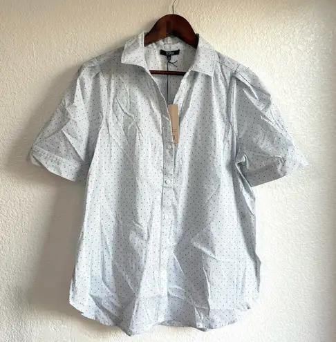 Womens Size Small Shirt Blouse White Blue Stripe Polka Dot Button Up Collared Short Sleeve Excellent NWT Measurments Approximate Laying Flat Chest 20.5 in Length 27 in HB-1025-0888✔️ 6xpm