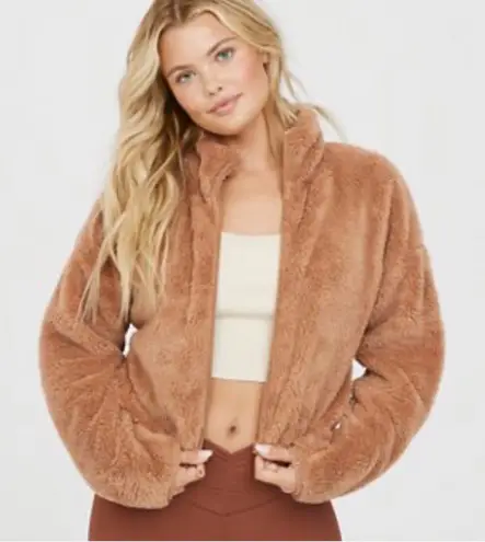 Offline By Aerie Fuzzy Soft Cropped Jacket Tan Brown cozy full zip Women's Small - $20 - From Natali