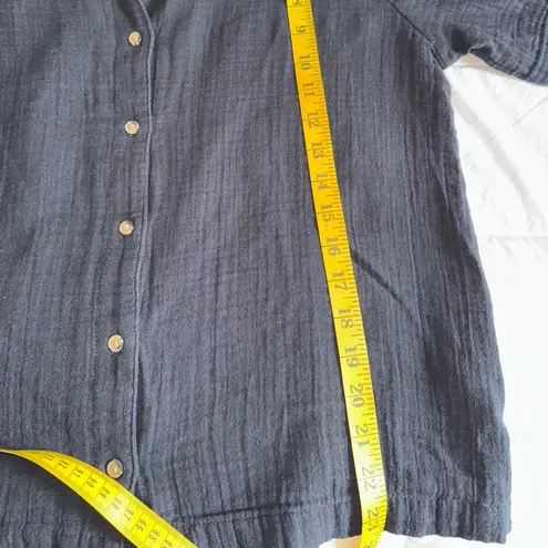 Classic black button down shirt. Short sleeves. Lightweight fabric. Perfect for casual wear.